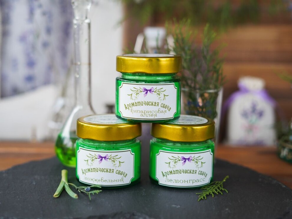 НАБОР ИЗ 3-Х СВЕЧЕЙ. ЛЕМОНГАСС, КИПАРИСОВАЯ АЛЛЕЯ, МОЖЖЕВЕЛЬНИК. 100 МЛ