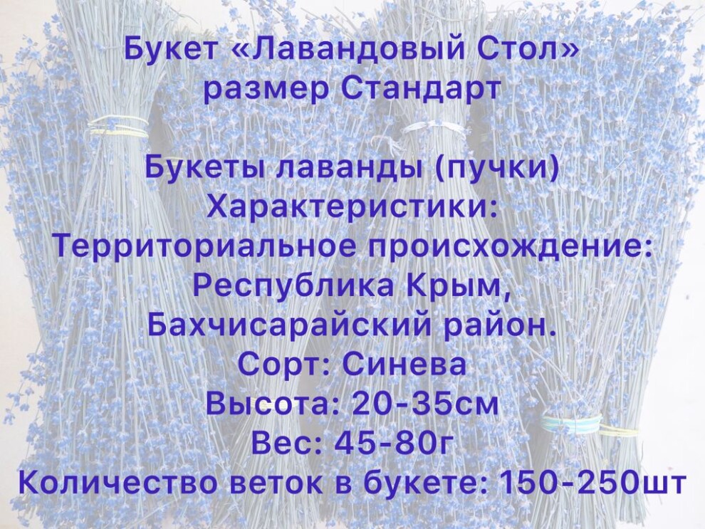 Букеты лаванды (пучки) - это лаванда, стебли не очищены от листьев, веточки не калиброваны по размеру, т.е. пучки такие, как их собрали с поля и высушили. Флористический материал.
