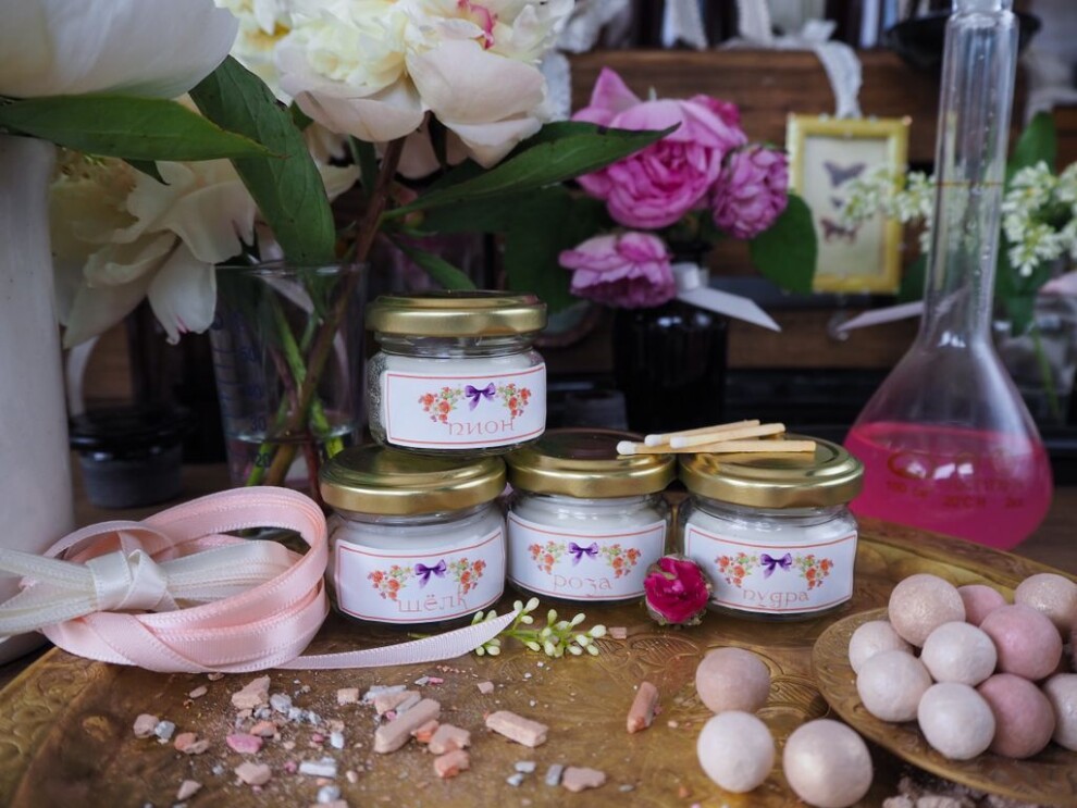 Состав: 100% соевый воск, ароматизатор Пудра/Роза/Пион/Шёлк
