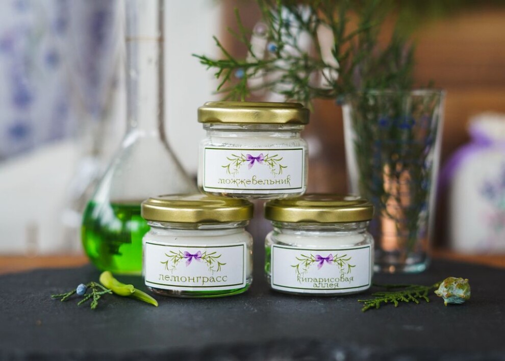Состав: 100% соевый воск, ароматизатор Лемонграсс/Кипарис/Можжевельник